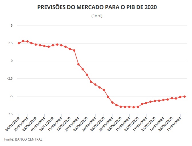 – Em setembro, o governo brasileiro manteve a expectativa de queda de 4,7% para o PIB de 2020.