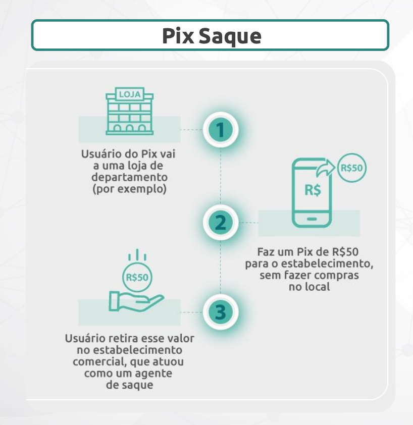 •Pix Saque – permitirá o saque em dinheiro em estabelecimentos comerciais;