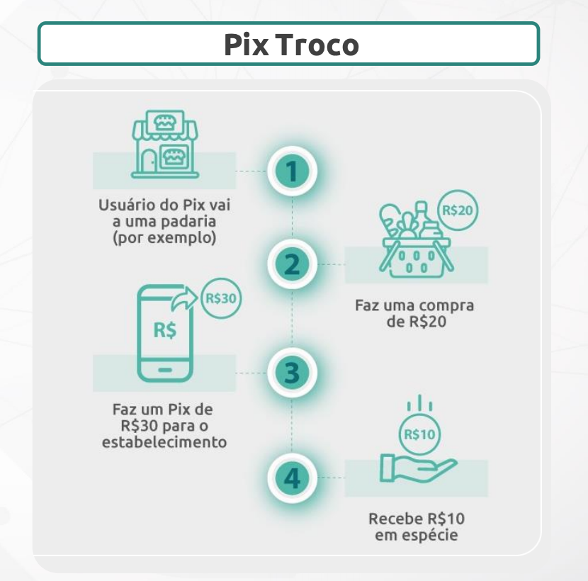 •Pix Troco – também possibilitará o saque, mas associado à compra ou à prestação de um serviço (mais informações abaixo).