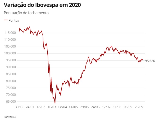 Na quarta, a bolsa fechou em queda de 0,09%, a 95.526 pontos. Com o resultado, a bolsa passou a acumular alta no mês de 0,98%. No ano, tem perda de 17,40%.